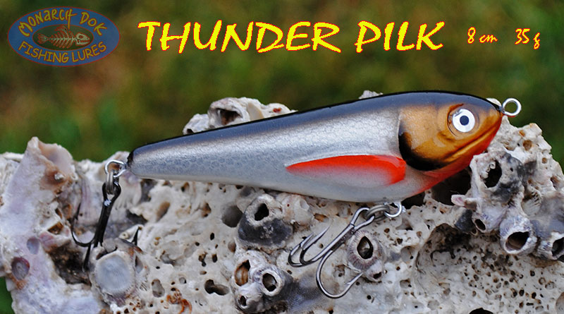Koliko puta ste se našli u situaciji da Vam je zabačaj 10 m prekratak? Meni mnogo puta, bilo da su krupni bajkoši nasred rijeke, ili pak jato lica ili strijelki na pučini. Stavim veći mamac - postignem daljinu, ali velik mamac ne odgovara njihovoj shemi žrtve i nisu zainteresirani. Ehh tu je nastala ideja za naš THUNDER PILK - mamac malih gabarita (svega 8 cm duljine) a solidne težine (35 grama). Prvi su gotovi, testiranje je u tijeku, o rezultatima ćemo Vas obavještavati redovito...